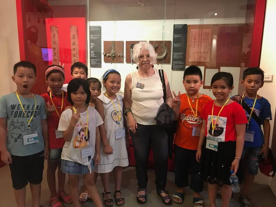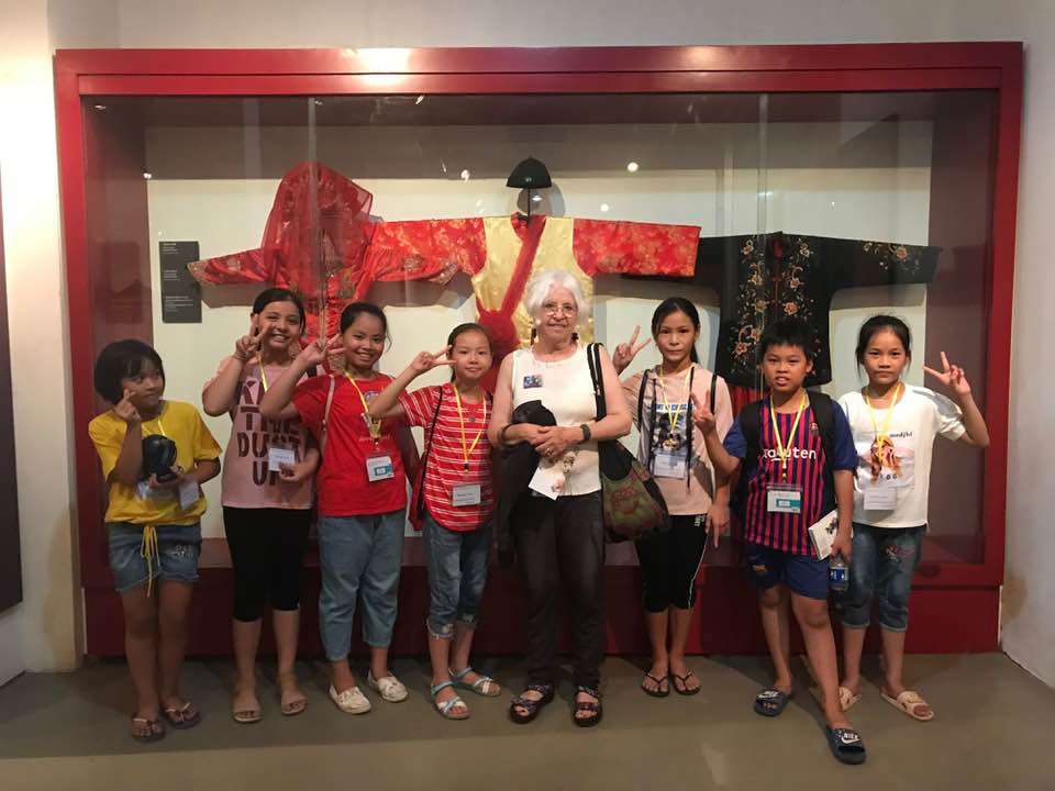 With Nguyen Thi Tuyet, Vice President of the Vietnam Women’s Union. At the Women’s Museum I am surrounded by children asking questions from a prepared list. How old are you? Very old -76! Where you live? What’s your favorite color? (Red and black) What’s your favorite animal? (Camel) They were practicing English! Followed by photos of the new Hanoi with multi-story apartment and office buildings. Vietnam is changing rapidly from the one I visited in 2013, let alone 1970, and is doing all it can in a period of rapid population growth and industrialization to strengthen its commitment to peace and reconciliation.