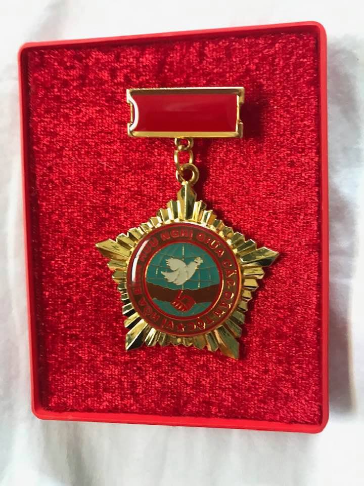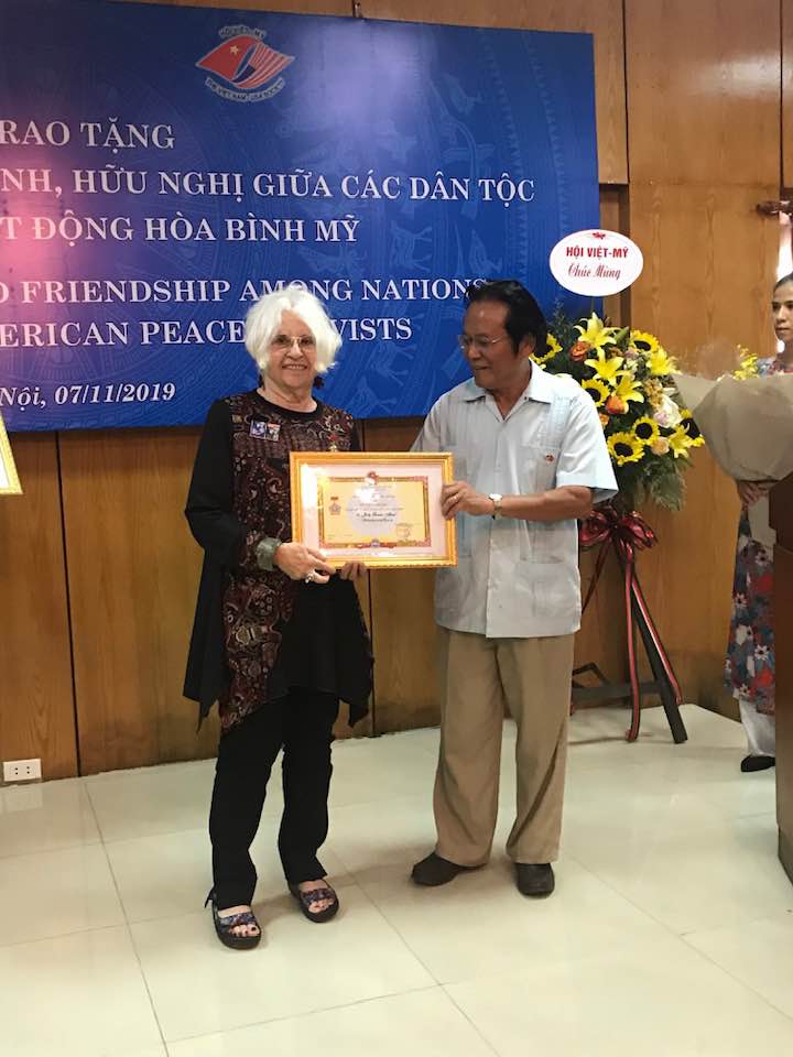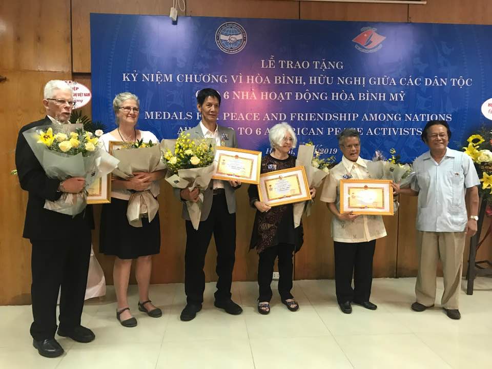 The culmination of my trip to Hanoi – I and everyone in our delegation – Frank Joyce, Mary Anne Barnett, Alex Hing and Karin Aguilar-San Juan – got awarded the Vietnam/USA Medal for Peace and Friendship Among Nations. For our anti-war activism and for the publication in Vietnamese of “The People Make the Peace” (www.justworldbooks.com). Don’t you just love the Soviet-style design? But where in the world will I wear it? Kidding aside, it really is an honor for which I am very grateful.